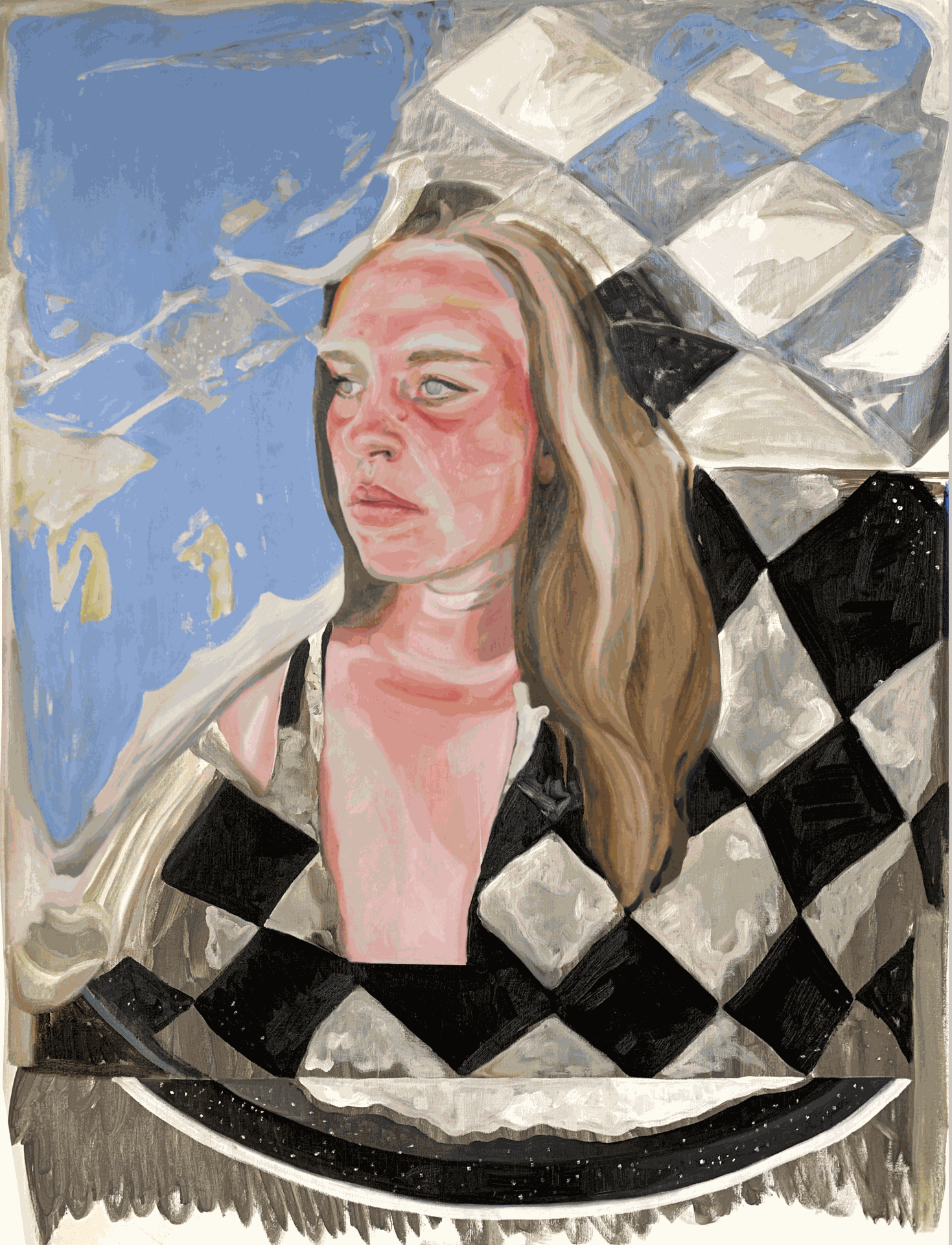 manier om de wereld te begrijpen via de gezichten en verhalen van anderen. Maar al snel ontdekte ze dat de kracht van haar schilderen niet lag in het nabootsen van wat ze zag, maar in het tonen van wat ze voelde. Verdriet, woede, verwondering en kwetsbaarheid worden bij haar geen thema’s, maar kleuren — een eigen taal van energie en emotie. Wat zwaar is in het leven, wordt op het doek iets dat leeft en beweegt.